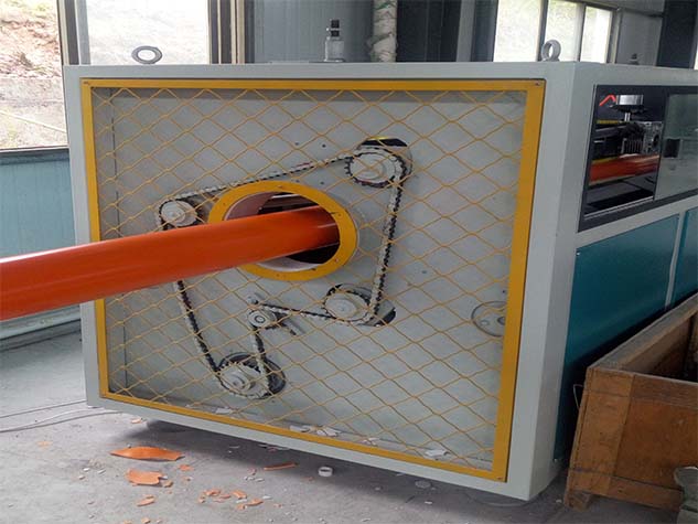 (5)牽引機(jī)用于連續(xù)、自動(dòng)地將已冷卻變硬的管材從機(jī)頭處引出來,變頻調(diào)速。